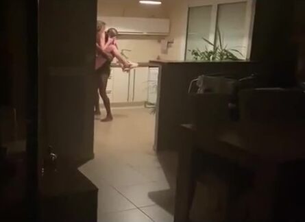Roomate films interracial couple fucking loud in kitchen