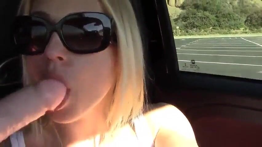 Hot big titty blonde plays with her pussy in car