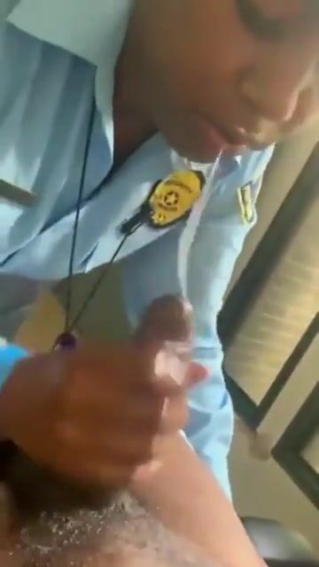 Sloppy ebony blowjob at work