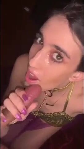 Hot brunette GF sucking long cock