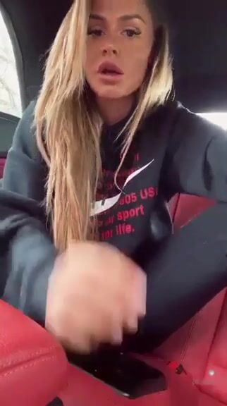 Curvy blonde teen masturbates and squirting in the car